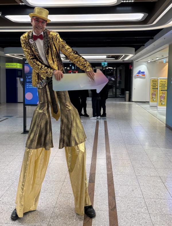 Oder wie wäre es mit einer Stelzen-Walkact-Version? Durch seine imposante Erscheinung zieht Monsieur Lumière alle Blicke auf sich – ein echtes Highlight für Firmenfeiern, Messen oder private Veranstaltungen.