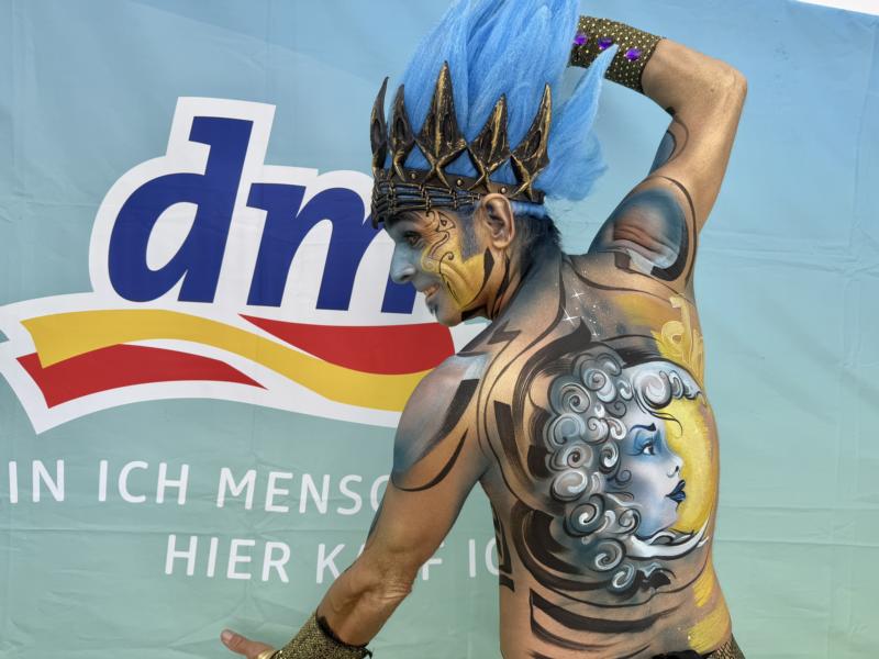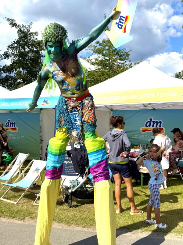 spontane Tanzaktion bei dm Showbodypainting mit anschliesender Aktion auf Jumpstelzen
