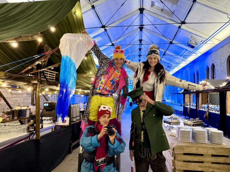 • Animation mit und um das Büfett durch unsere Comedy-Skikellner, zum Teil in Lederhosen, und die freche Zenzi von der Alm (übrigens können einige der Akteure auch auf dem Eis mit Schlittschuhen agieren)