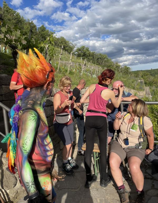 Ihre Gäste gestalten kleine Felder auf dem Körper eines Models gern mit Coatchig unseres Bodypainters und erschaffen gemeinsam ein großes Kunstwerk – perfekt für Teamevents, Incentives oder kreative Firmenfeiern.