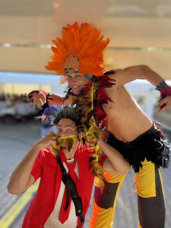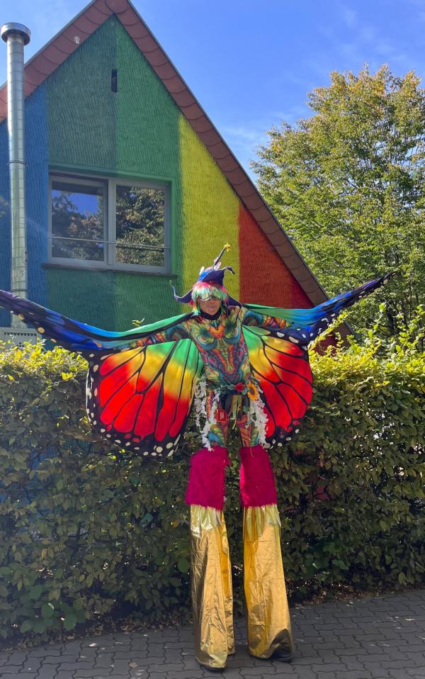 Listig, clever und immer mit einem verschmitzten Grinsen – ein Walkact voller Witz und Spielfreude. -